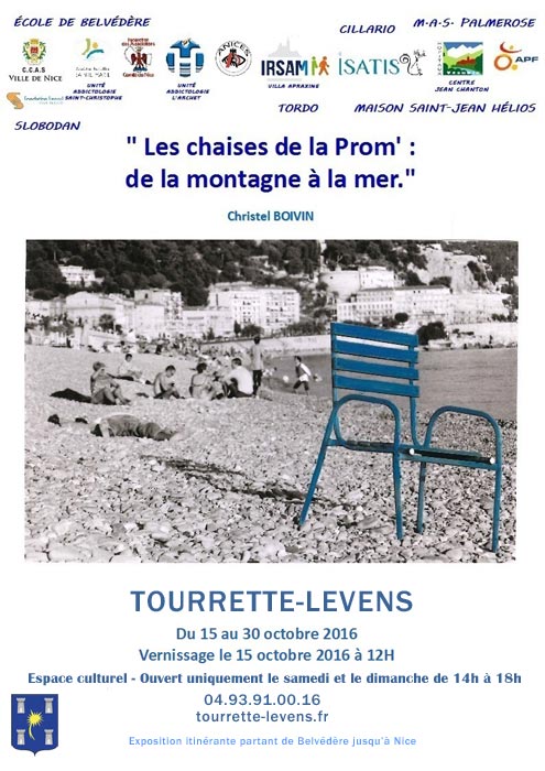 L’exposition « Les chaises de la Prom’ de la montagne à la mer » présente les photographies de l’artiste Christelle Boivin. Chacune de ses photos est agrémentée d’un cadre réalisé par des artistes, des associations ou autres… Le tout formant une œuvre à part entière.