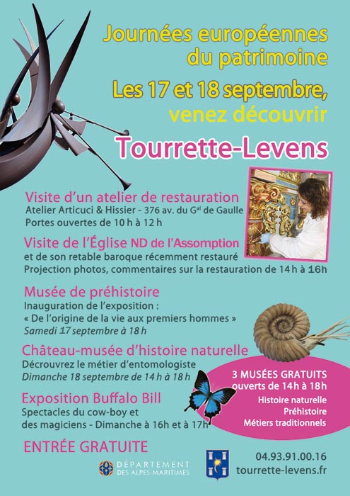 Ouverture des 3 musées gratuits de 14h à 18h (Musée d’histoire naturelle et des papillons, musée des métiers traditionnels, musée de la préhistoire) – À visiter également l’exposition Buffalo Bill